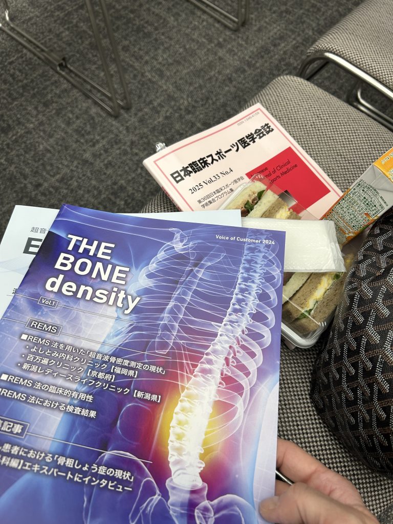 昨日から泊まりで参加している日本臨床スポーツ学術集会でのセッションで。REMSという超音波骨密度計の新しい機械の紹介があり、興味津々。 放射線浴びないなら良いなぁ、、、